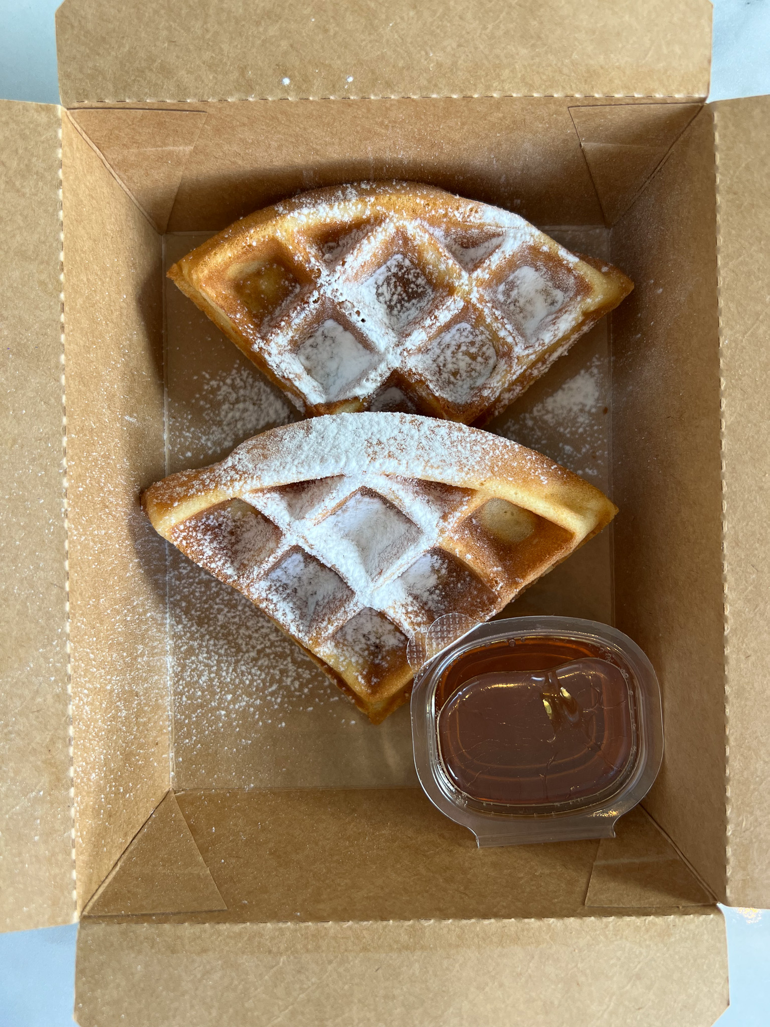 วาฟเฟิล 2 ชิ้นพร้อมไซรัป